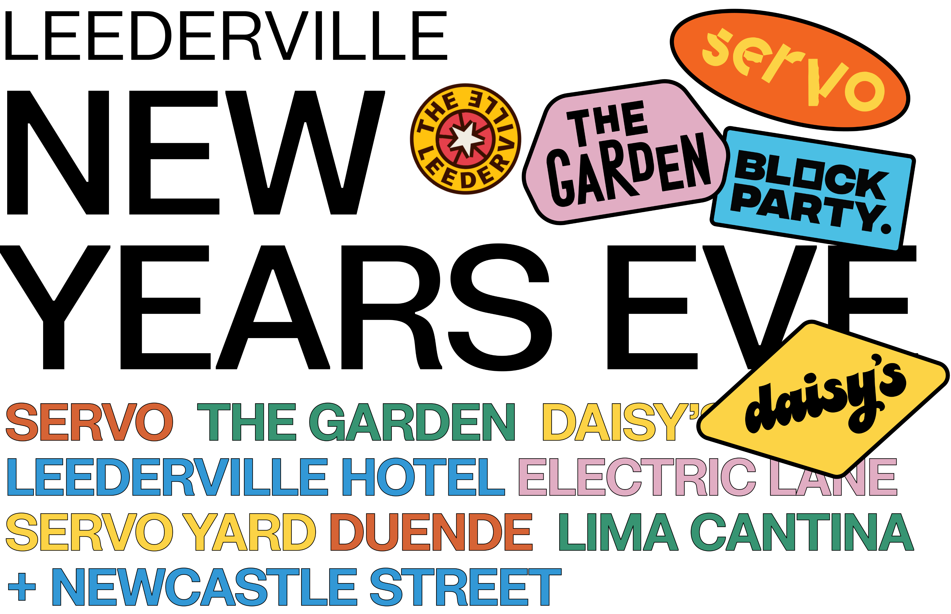 Bring in the New Year surrounded by music, friends, cocktails & dance as we take over The Leederville Precinct with with our pals Daisy’s, Servo, The Leederville Hotel, The Garden & Evergreens PLUS Electric Lane, Electric Terrace, Duende, Lima Cantina & Newcastle Street!Explore 11 unique spaces and eight stages, each with their own atmosphere!For those looking for a complete NYE experience, explore our Dinner & Drink Packages. Book a table and celebrate with food, friends & cocktails at Garden Restaurant, Servo Restaurant, Duende or Lima Cantina before joining the party to see in 2026!